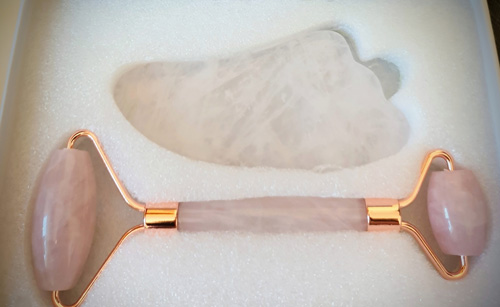 Az alapos arctisztítás után a frissítő rózsakvarc "jade" roller használatával felélénkítjük a bőrt, majd a rózsakvarc gua sha segítségével eldolgozzuk a pangó nyirokfolyadékot az arcbőrből. A rózsakvarc ismert a nyugtató hatásáról, fizikailag méregteleníti a szervezetet, serkenti a keringést. A jade rollernek élénkítő hatása van, főleg egy meleg nyári napon, míg a gua sha ragyogóbbá, feszesebbé teszi a bőrt és felgyorsítja a méregtelenítési folyamatokat. A vendégeim a világhíres hidratáló krém, személyre szabott primerek és masszázst követően csodálkozva szokták megjegyezni, hogy smink nélkül is mennyire szép, feltöltött  lett a bőrük és mennyire ellazultak.