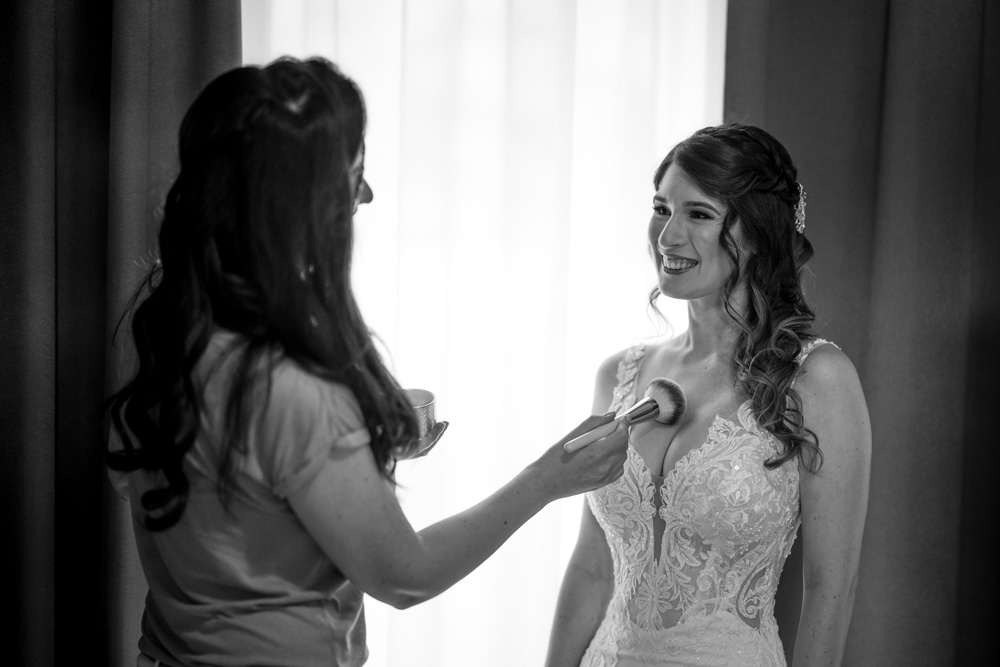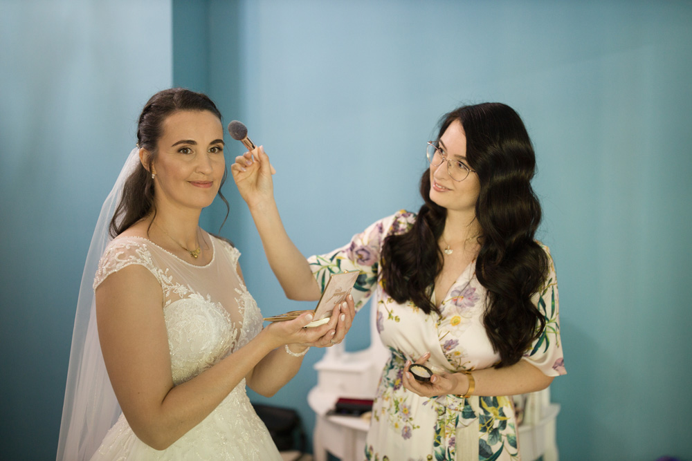 Van, amikor menyasszonyi ruhát fűzök, szoknyarétegeket igazgatok, kihulló hullámcsatokat tűzök vissza a frizurába, 10x lesegítem a sminkes székből a menyasszonyt, szállodai ajtót nyitogatok és fotósok, filmesek kérésére belenyomkodom a púder/szemhéjpúder/rúzsba az ecsetet (tényleg jól mutat a fotón!), vagy épp huszadjára lefújom szegény menyasszonyt a sminkfixálóval. 🙂